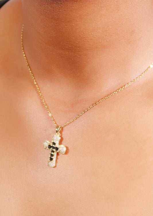 Cross Stone Diamond Necklace Black