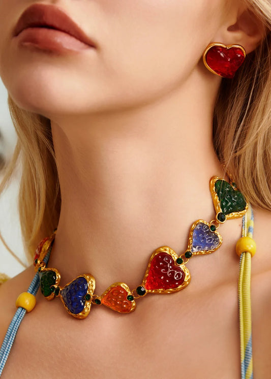 Michelle Colorful Hearts Love Golden XL Long Necklace